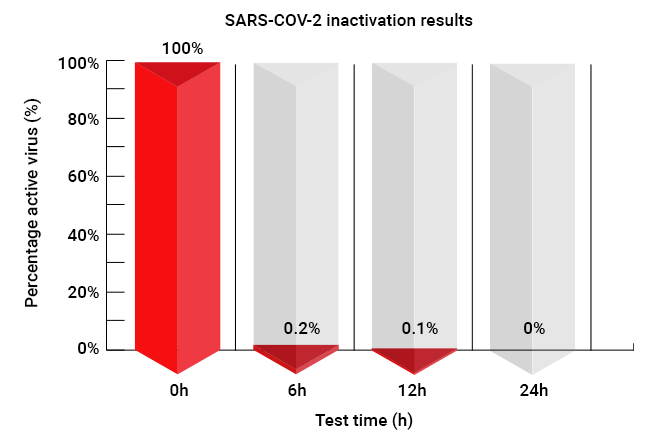 Tests conducted by the Microbial Testing laboratory Kobe Testing Center of the QTEC – Japan Textile products Quality and Technology Center have demonstrated that PLASMA QUAD is capable of successfully inactivating up to 99.8% of the Covid 19 virus (SARS-CoV-2).